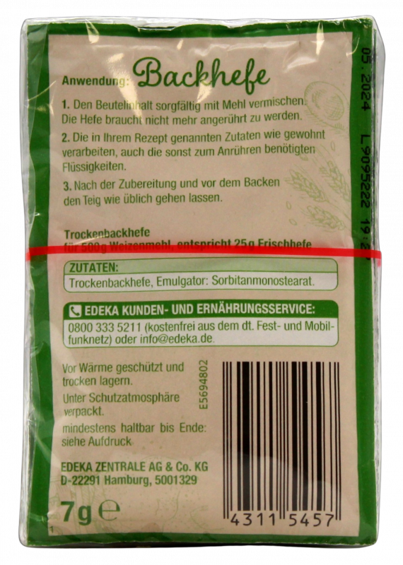 Trockenbackhefe, Emulgator: Sorbitanmonostearat.