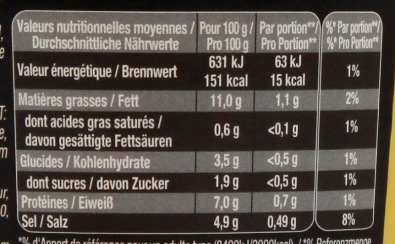 | davon gesättigte Fettsäuren in g | 0.6 |