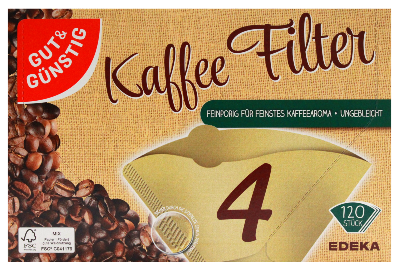 Gut & Günstig Kaffeefilter Größe 4 ungebleicht, 9 x 120 Kaffeefilter