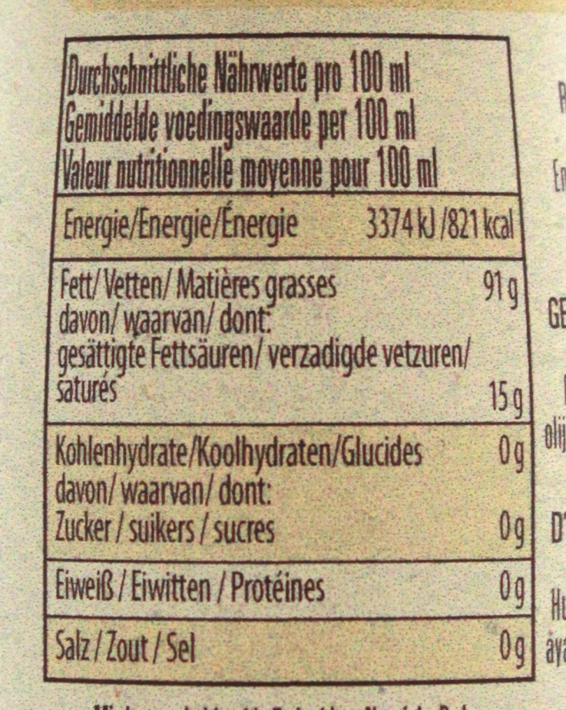 thält ausschließlich raffiniertes Olivenöl und direkt aus Oliven gewonnenes Öl.