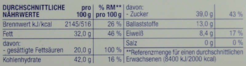 | Brennwert in kcal | 516 |