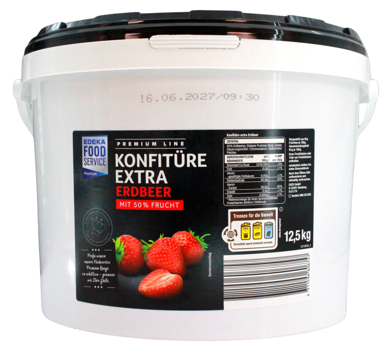 Die EDEKA Food Service Premium Line Konfitüre Extra Erdbeere ist ein hochwertiger Fruchtaufstrich, der speziell für die Anforderungen der Gastronomie und Hotellerie entwickelt wurde.
