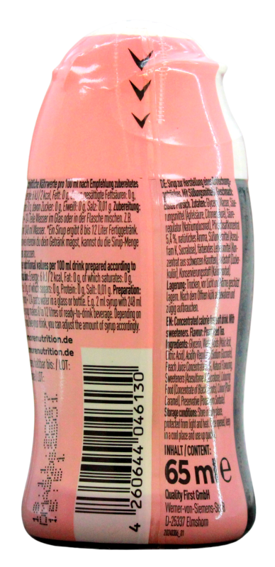 Die kompakte 65-ml-Squeezie-Flasche reicht für die Zubereitung von ca. 8-12 l Fertiggetränk.