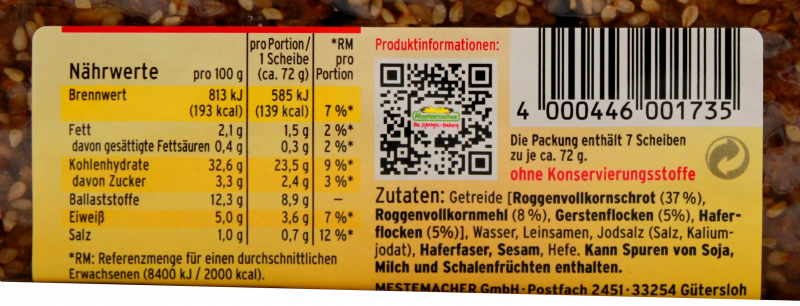 | davon gesättigte Fettsäuren in g | 0.4 |