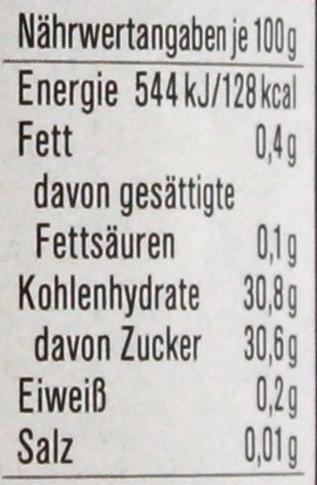 | davon gesättigte Fettsäuren in g | 0.1 |